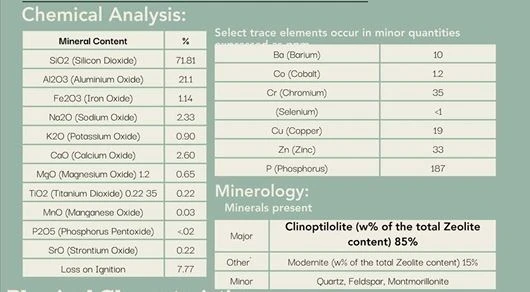 Zeolite là một loại khoáng chất Silicat nhôm ( aluminosilicate) có cấu trúc rỗng với hàng triệu cái lỗ nhỏ li ti như tổ ong bên trong chính vì vậy mà zeolite có khả năng hấp phụ cực kỳ tốt. Zeolite có thành phần chính là SiO2 chiếm 71.81% và Al2O3 chiểm 21.1% và các thành phần khoáng chất khác chính vì vậy zeolite mang đến nhiều ứng dụng và giải pháp hữu ích trong rất nhiều ngàng nghề, lĩnh vực khác nhau.